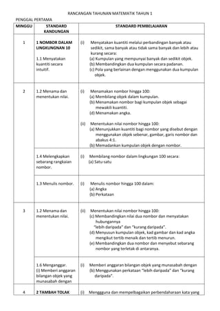 Rancangan Tahunan Matematik Tahun 1 Kssr