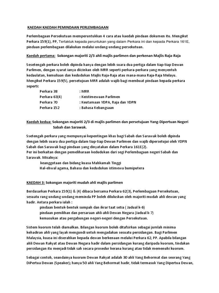 Kaedah Pindaan Perlembagaan Persekutuan Pdf